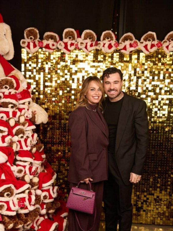 La coppia sorride complice al Christmas Party più glamour di Roma