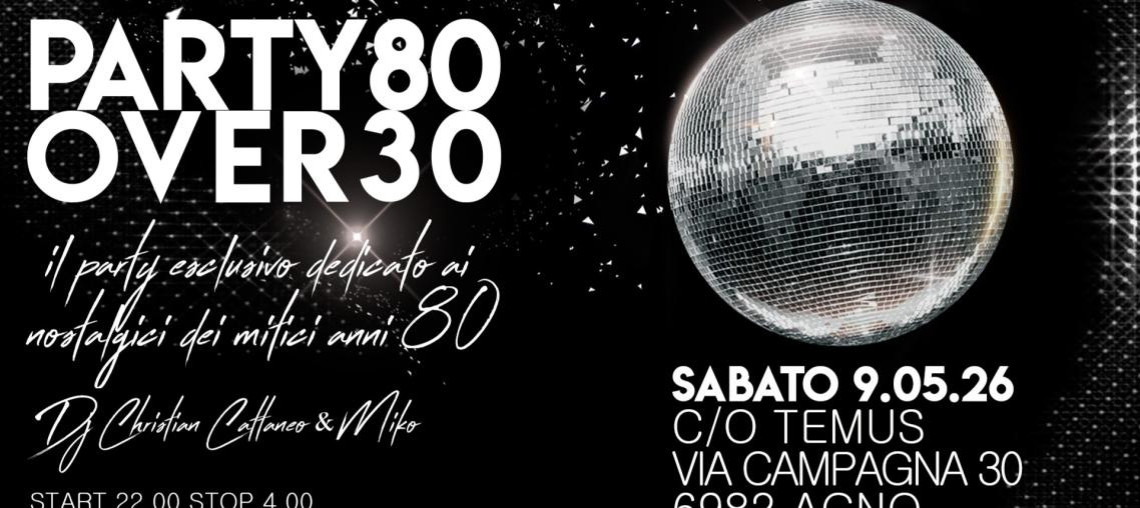 L’originale party over 30 dedicato ai nostalgici dei mitici anni '80 del Temus! In pista si balla partendo dagli anni ottanta raggiungendo gradualmente gli anni novanta!