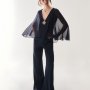 La palette cromatica attraversa toni intensi come nero e blu notte, fino a nuance luminose e polverose, arricchite da accenti più vivaci. A completare i look, accessori preziosi tra clutch, sandali e bijoux, che esaltano con discrezione l’eleganza della collezione.