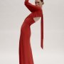 I materiali costruiscono il racconto: tessuti fluidi e trasparenti evocano il movimento del corpo, mentre texture più strutturate introducono una presenza decisa e contemporanea. Veli, drappeggi e asimmetrie dialogano con la silhouette, accompagnandola con naturalezza e libertà.