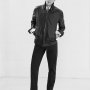 Accanto, il blouson in pelle nera con collo a camicia reinterpreta il classico con modernità: pelle di agnello morbida, texture basket e vestibilità regolare per un’eleganza che attraversa con disinvoltura business e tempo libero.