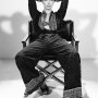 Nel bianco e nero, il maschile indossato da Irina introduce una disinvoltura disciplinata: l’abito con la cravatta, i tagli sartoriali netti, il pigiama maschile reinterpretato con rigore e naturalezza. Un equilibrio sottile tra struttura e libertà.