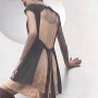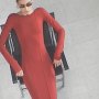 Protagonisti sono i dettagli che rivelano la forza della materia: fodere, cuciture e chiusure a vista si ritrovano su abiti, maglie, leggings e capispalla. Giacche, camicette e pantaloni si arricchiscono di bordi grezzi, schiene drappeggiate, dettagli a peplo e cerniere a vista, in un gioco di contrasti che rende evidente il processo creativo.
