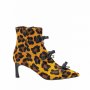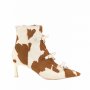 Gli stivaletti si distinguono per fiocchi in pelle realizzati a mano e piercing decorativi che uniscono romanticismo e spirito rock. In pelle di vitello con pattern sorprendenti – dal giallo maculato alla stampa “cow” – sono completati da un tacco geometrico laccato che ne esalta la personalità.