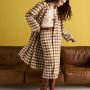 I pantaloni wide leg incarnano un’eleganza quotidiana dal respiro metropolitano, mentre gonne e cappotti a quadri richiamano un fascino rétro rivisitato con occhio moderno. A completare il look, accessori in pelle stampa cocco, orecchini dorati e stivali al ginocchio: elementi che definiscono una femminilità raffinata, consapevole e profondamente attuale.