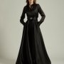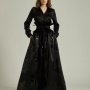 Linee fluide e avvolgenti si intrecciano a inserti di tessuti preziosi, dando vita ad abiti che raccontano storie di glamour, sicurezza e sofisticatezza. La palette cromatica si muove tra tonalità classiche e senza tempo, con il nero assoluto protagonista: intenso, elegante, carico di mistero e personalità. I dettagli, studiati con precisione, e le finiture di alta qualità rendono ogni capo una scelta naturale per eventi serali, gala e occasioni importanti.