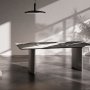 Al centro dello stand spicca Neolith Iconic Design, frutto di oltre cinque anni di ricerca e sviluppo. La collezione integra un’esclusiva tecnologia di stampa 3D e un disegno a vena passante, che percorre lo spessore della lastra creando una continuità visiva senza precedenti. A supporto della presentazione, un tavolo realizzato con più pezzi mostra i diversi tagli applicabili e l’effetto estetico completo della superficie.
