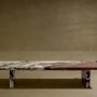 Dedicata a progetti indoor e outdoor, la panca Ever di Kreoo è un raffinato incastro geometrico di lastre in marmo dai diversi spessori, firmata da Christophe Pillet. La superficie rettangolare, slanciata e dallo spessore di 4 cm, è completata da due sottili bordature sui lati corti, pensate per accogliere tre cuscini in pelle o tessuto, con cuciture decorative tono su tono o a contrasto.