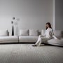 I braccioli arrotondati spezzano la linearità del sistema e introducono un gesto morbido, quasi couture. La composizione modulare, arricchita dalla chaise longue laterale, invita a vivere il divano come uno spazio aperto, libero e condiviso.