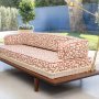 La struttura in mogano Utìle dialoga con il materasso firmato Dorelan, mentre la spalliera curva avvolge il volume con naturalezza. I tessuti Dedar, impreziositi da dettagli sartoriali, completano un progetto dove ogni elemento contribuisce a un equilibrio raffinato.
